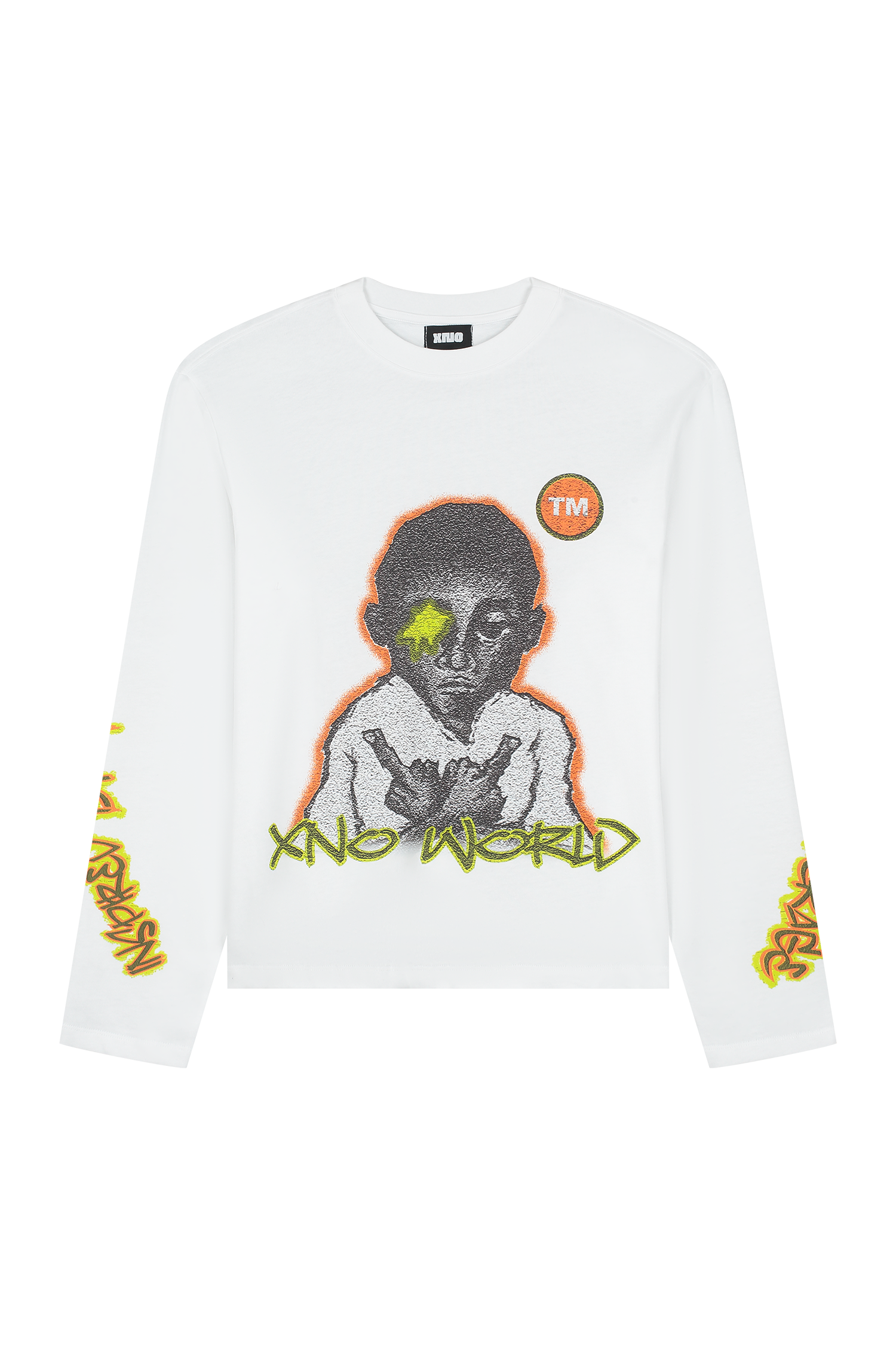 Boxy fit, bold front + sleeve prints. Clean, heavy, and street.